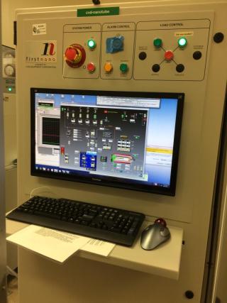 CVD-Nanotube The First Nano CVD furnace is dedicated to carbon nanotube synthesis and can accommodate multiple pieces or a 4" wafer. Methane, hydrogen and ethanol are available as process gases and thus provide versatility for both SWCNT growth as well as vertical forest growth. Process recipes for horizontally aligned SWCNT growth on ST-cut quartz (available from the SNF stockroom) have been optimized and are available to the user, with typical yields of 1-5 SWCNTs per micron depending on the catalyst used.