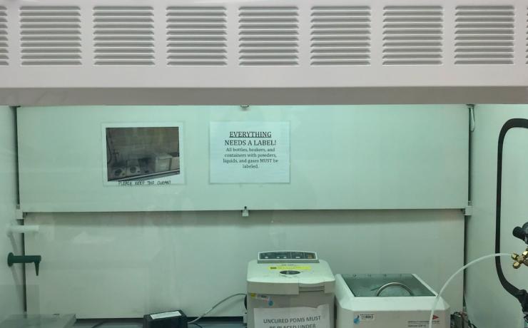 Fumehood 4 is used primarily for PDMS processing including mixing, spin coating, and use of the hot plate.