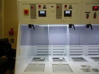The wbclean_res-piranha is part of the Wet Bench Clean_-res-piranha-hf-hotphos. This bench (semi-automated) is part of the Clean Cleanliness Group for 3", 4", and 6" Si, SiGe, and quartz substrates and is primarily used for stripping photoresist, removing scribe dust and wet oxide etching. Wafers may not contain or have ever contained any metals, nor been exposed to equipment which may pose this contamination risk. This bench contains two hot pots for 90% sulfuric acid/hydrogen peroxide ("piranha") for stripping resist, two Teflon tanks containing 50:1 HF, 20:1 BOE, or 6:1 BOE for etching oxide, one hot pot for phosphoric acid, three automatic dump rinsers and two spin/rinse dryers.